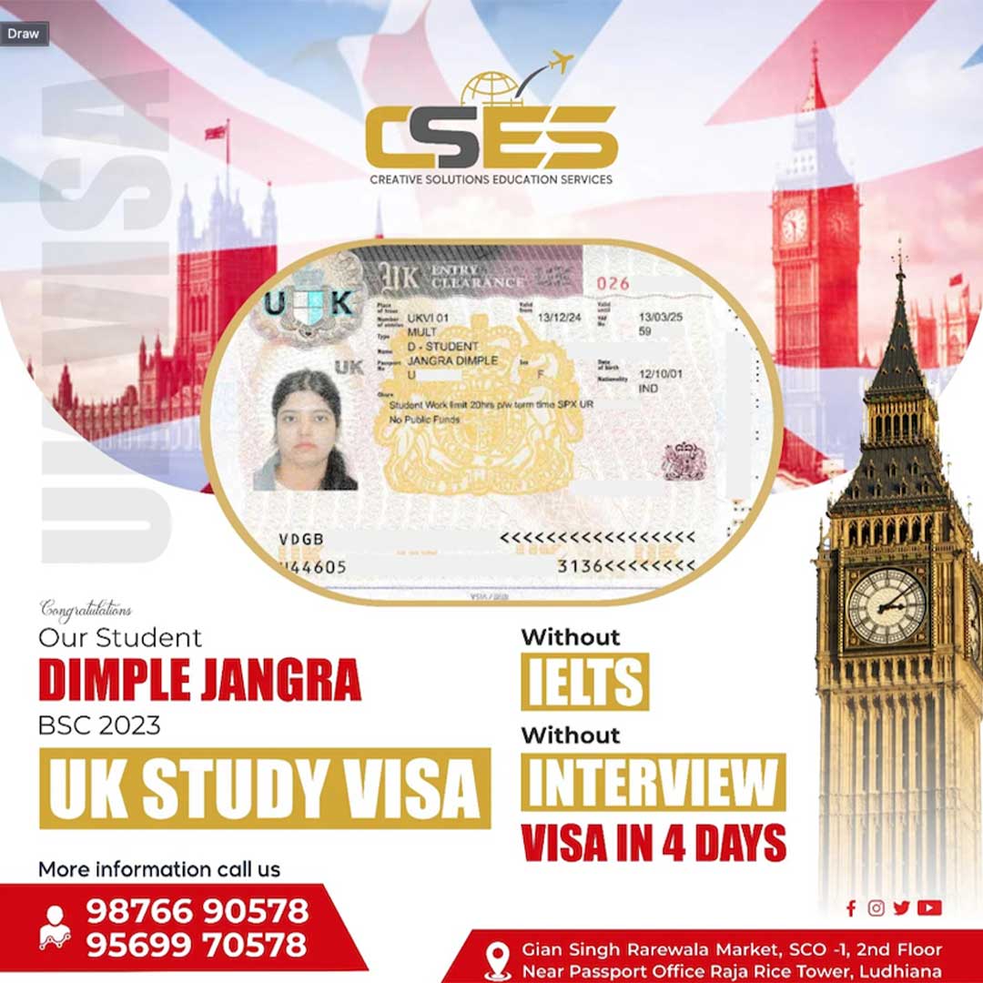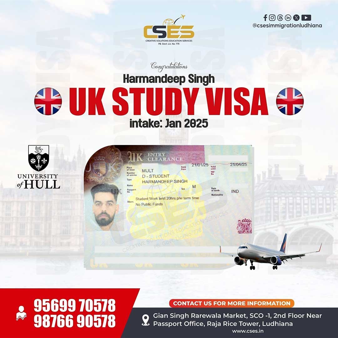 “Best immigration consultant in Ludhiana. I received my UK study visa after a 4-year study gap and my husband got his dependent visa because of their efforts. Thanks to the CSES team, especially Gurwinder Sir. Very good counseling. I suggest visiting CSES for any abroad enquiry.”